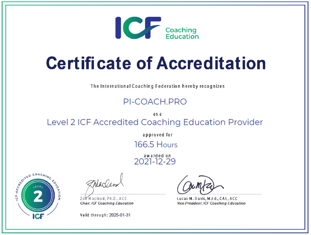 Je suis ravi de partager une grande réussite pour notre organisation. Notre prestigieux Programme International Coaching Professionnel a reçu l’accréditation d’éducation au coaching de Niveau 2 de l’International Coaching Federation (ICF) ! 🎓